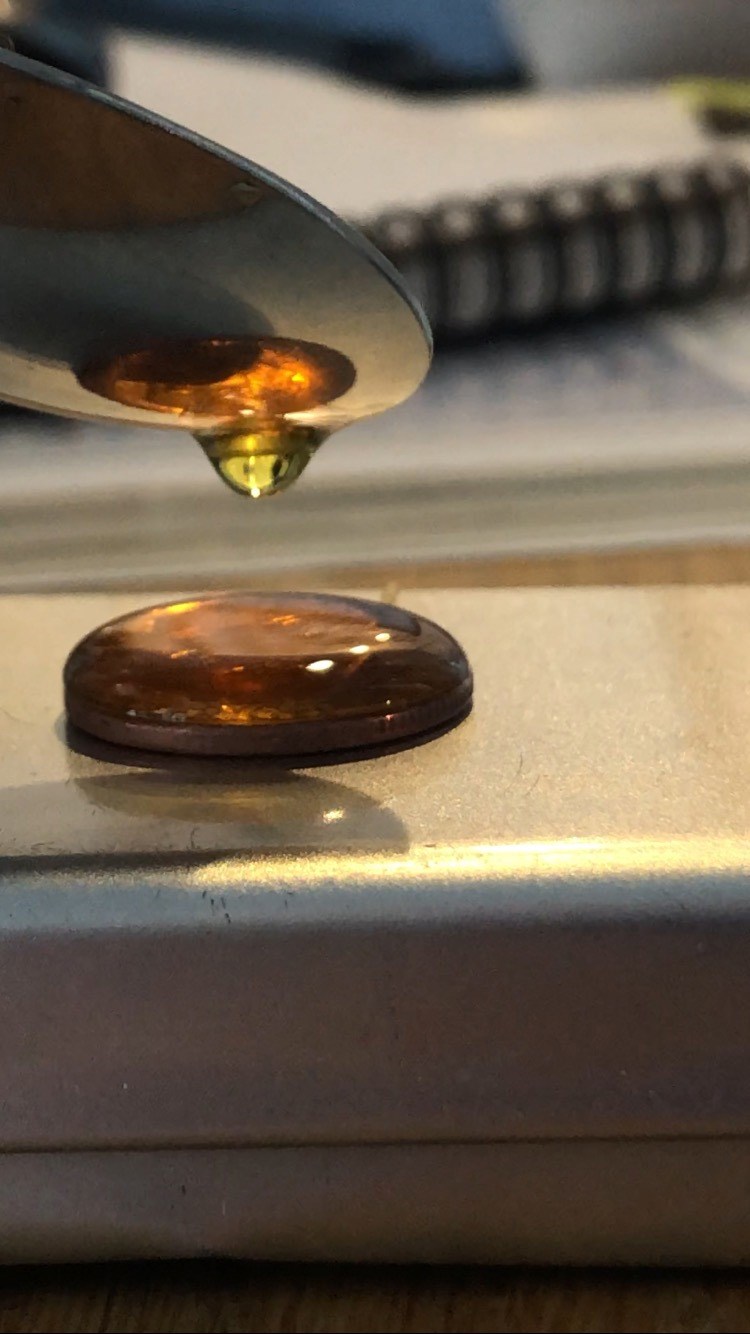 Jag har en fundering, har fått i uppgift att göra ett experiment då vi skall droppa vatten- och oljedroppar på ett mynt. Jag kan förklara det faktum varför ytspänning sker med vatten och myntet då jag vet att vattnet är polärt och inte vill binda sig med gaserna i luften. Men olja skall ju vara opolärt med låga ytspännings egenskaper, hur skall jag då förklara att jag får större effekt (en större kupolliknande form) på myntet när jag droppar olja på det och inte vatten?