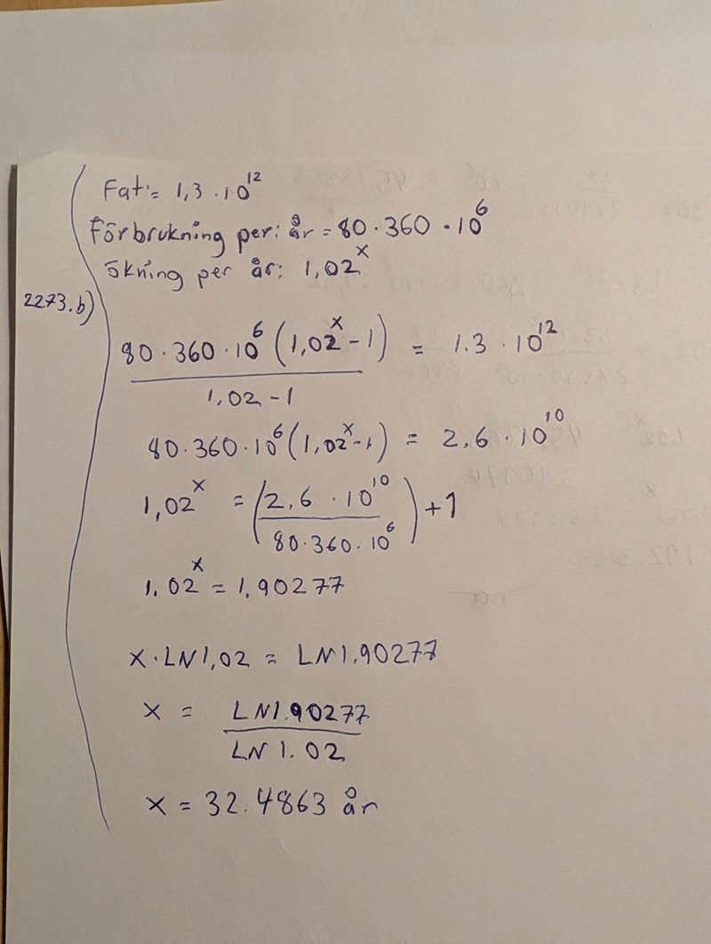 Hej jag undrar om min uträkning är korrekt på fråga 2273 b)