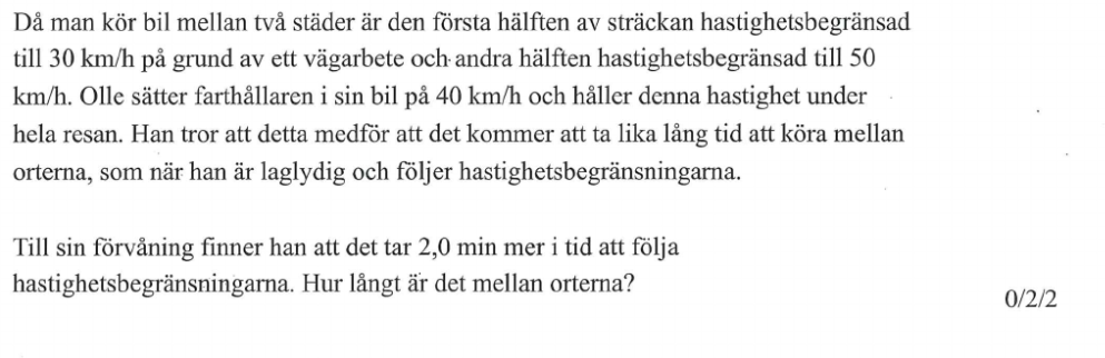 Arup skrev:Nej, för att 40 km/h gäller för hela resan