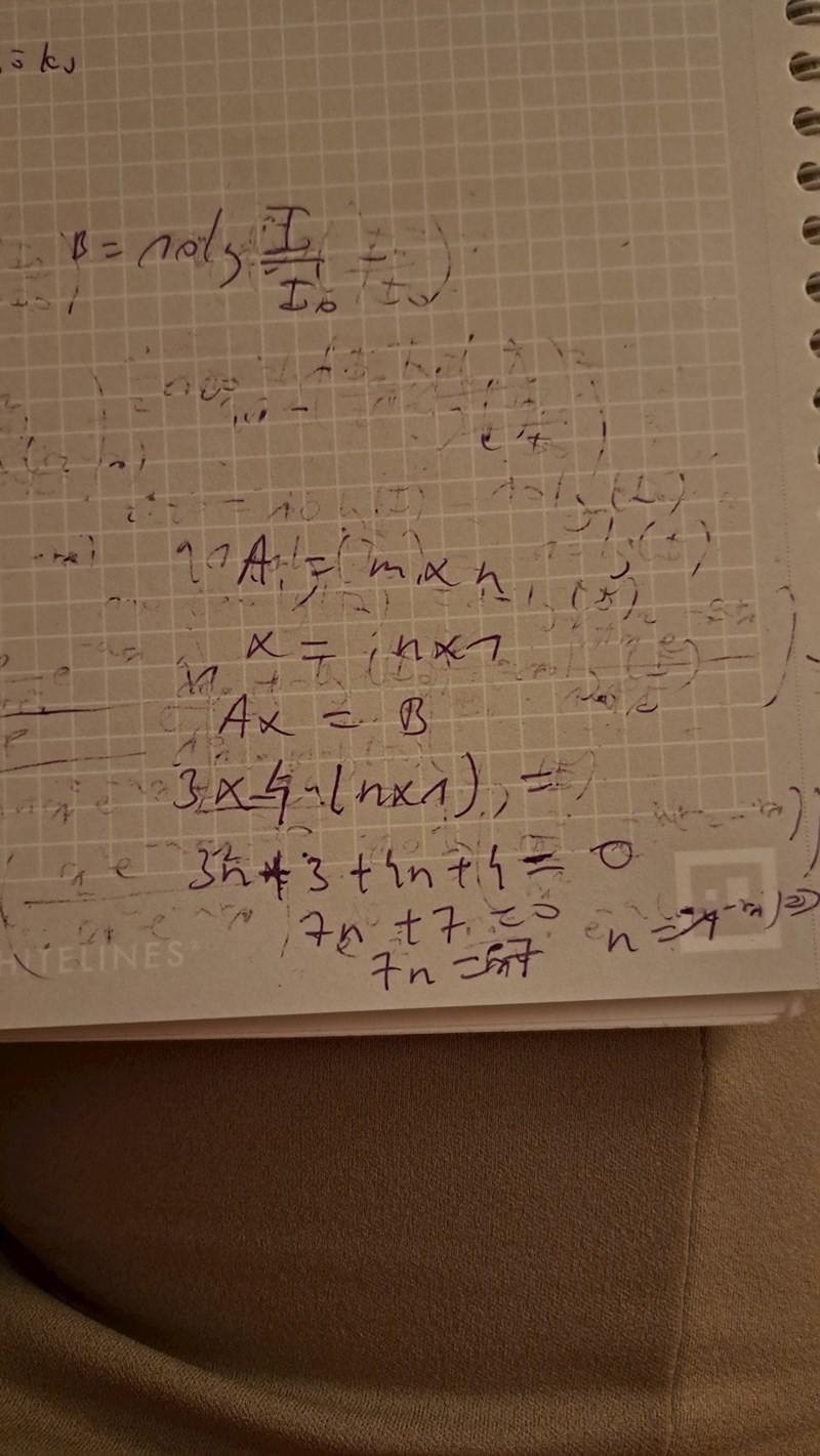 Löste det som en ekvation för vi 3x4x(n×1)=0 och då är n =-1