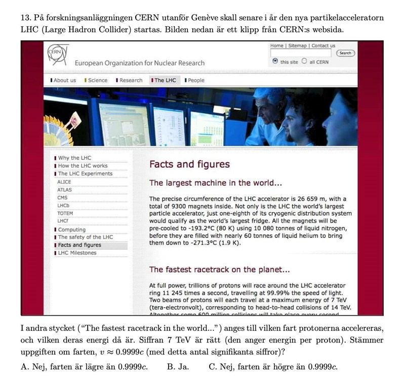 Härav borde man kunna dra slutsatsen att farten ska vara högre än 0.9999c, och om man ska svara med samma antal signifikanta siffror borde det väl bli 1.000c eller hur?