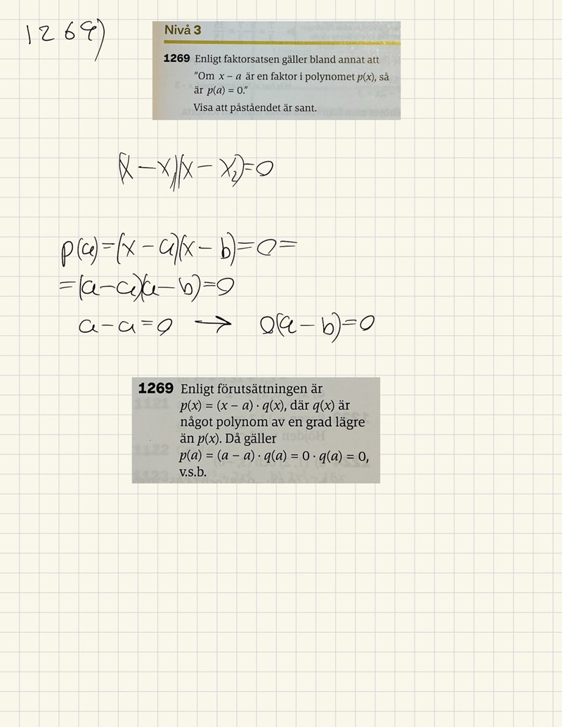 "Då x-a är en faktor i p(x) kan p(x) skrivas
