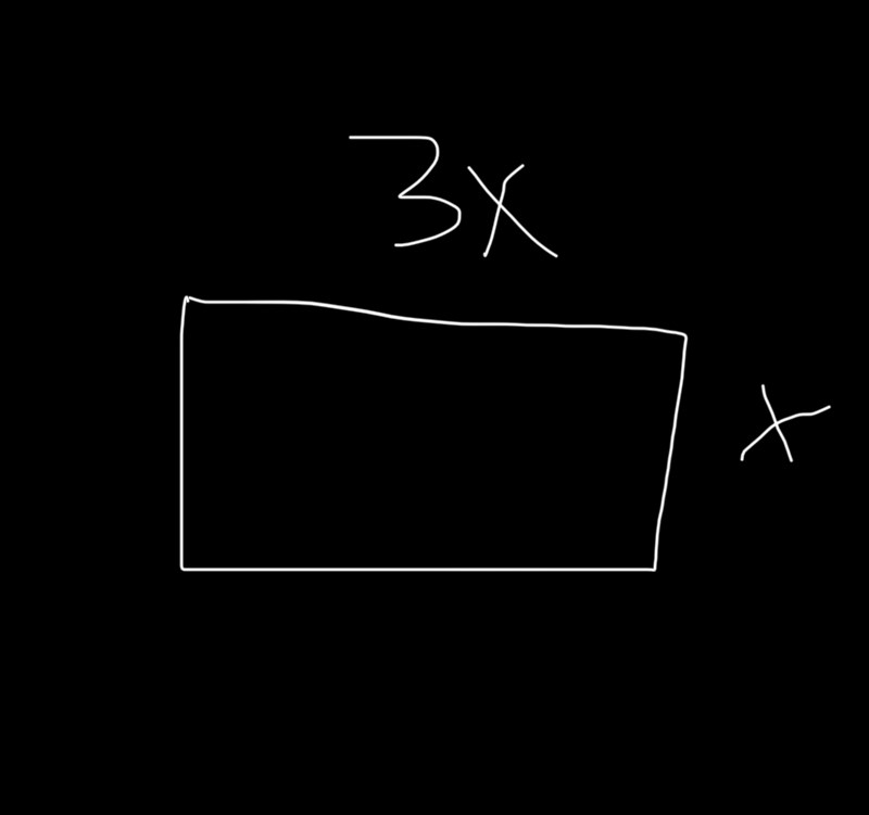Kalla sidan från början för x respektive 3x. Längden är då 3x och bredden är x