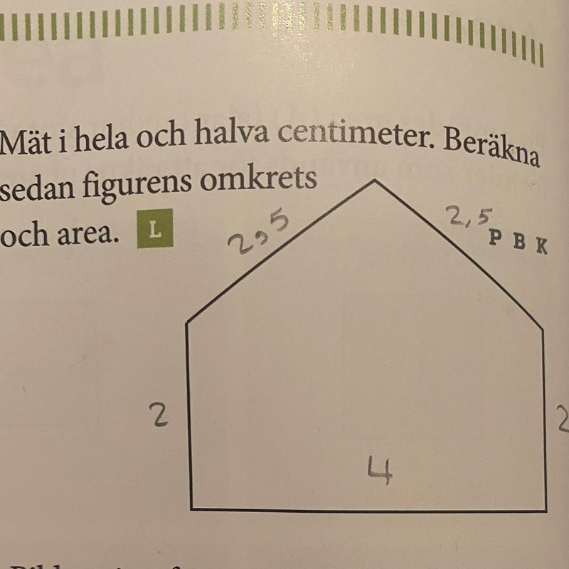 Va? Jag tänkte dela upp figuren i en rektangel och triangel