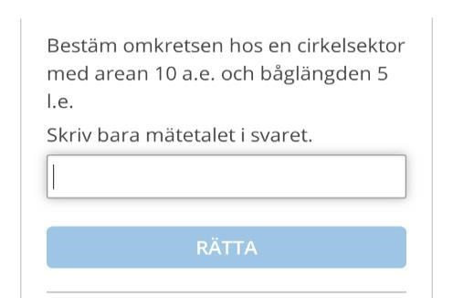 Jag känner till några få formler om det här sedan tidigare som när man vill räkna Area på cirkelsektorn så räknar man