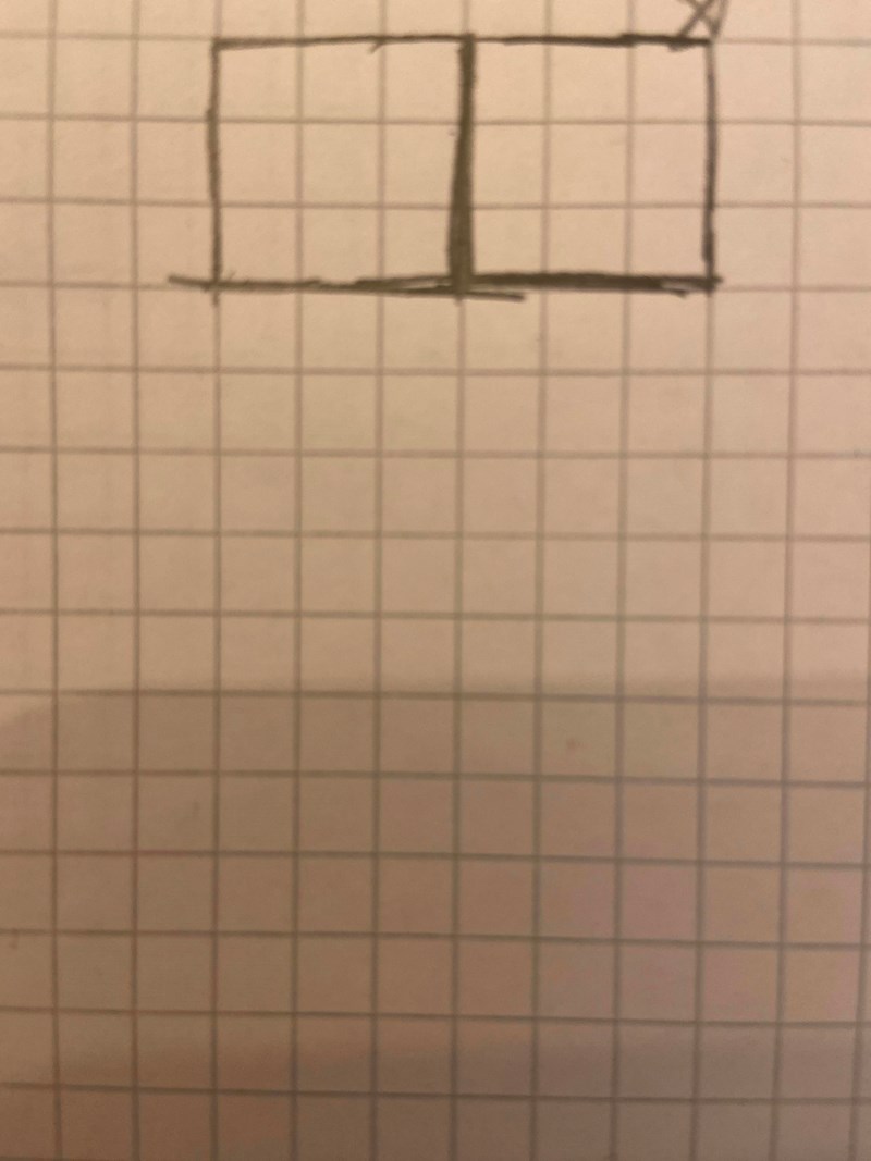 Omkretsen av två ihopsatta kvadrater är 42 cm. Beräkna arean av en kvadrat.