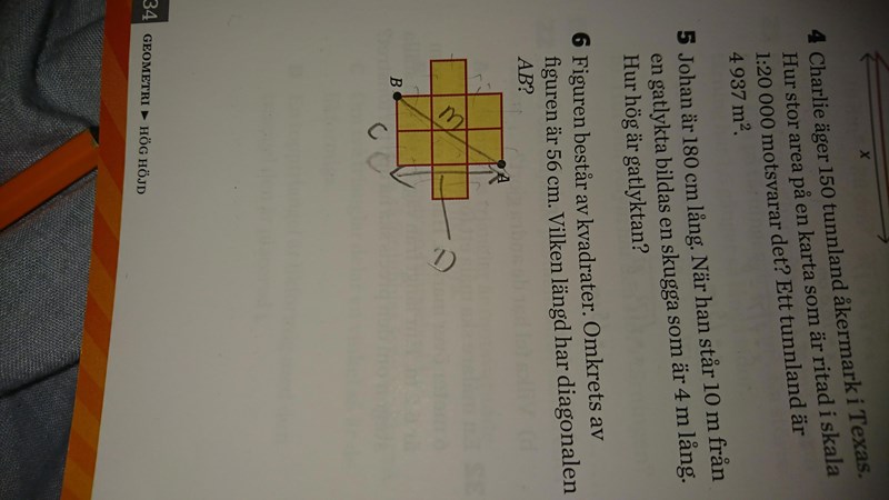 Ja det stämmer, om du vill svara exakt så är sträckan AB = cm