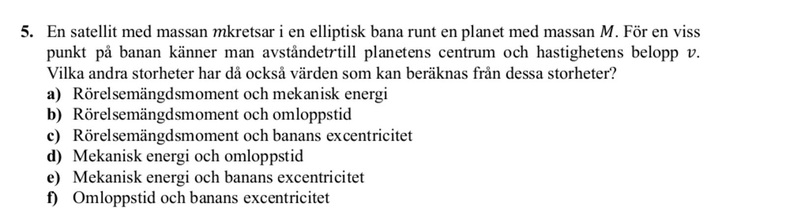 Vet att coffeeshot ställde en fråga om samma uppgift för inte längesedan. Jag har dock istället svårt att förstå hur man räknar ut omloppstiden med de givna värdena. (d är rätt svar) Formeln för omloppstid jag har lärt mig är