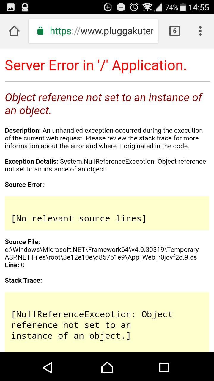 Nu har det varit flera dagar utan att jag kunde kolla PA på mobilen. Jag har testat i flera olika browsers och jag får en sånt bild.
