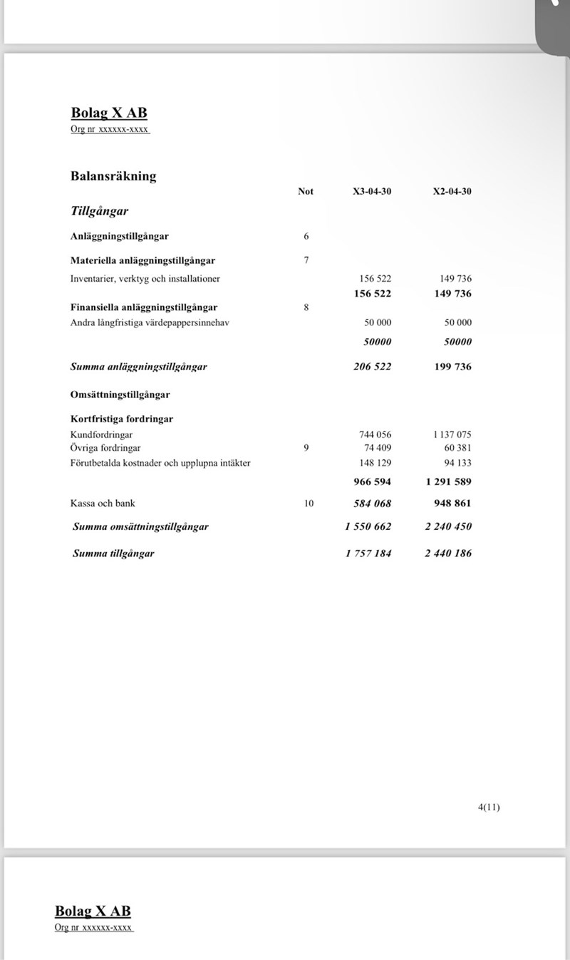 OT1 = Kassa och bank 584 068 + Kundfordringar 744 056 , VAD MER SAKNAS?