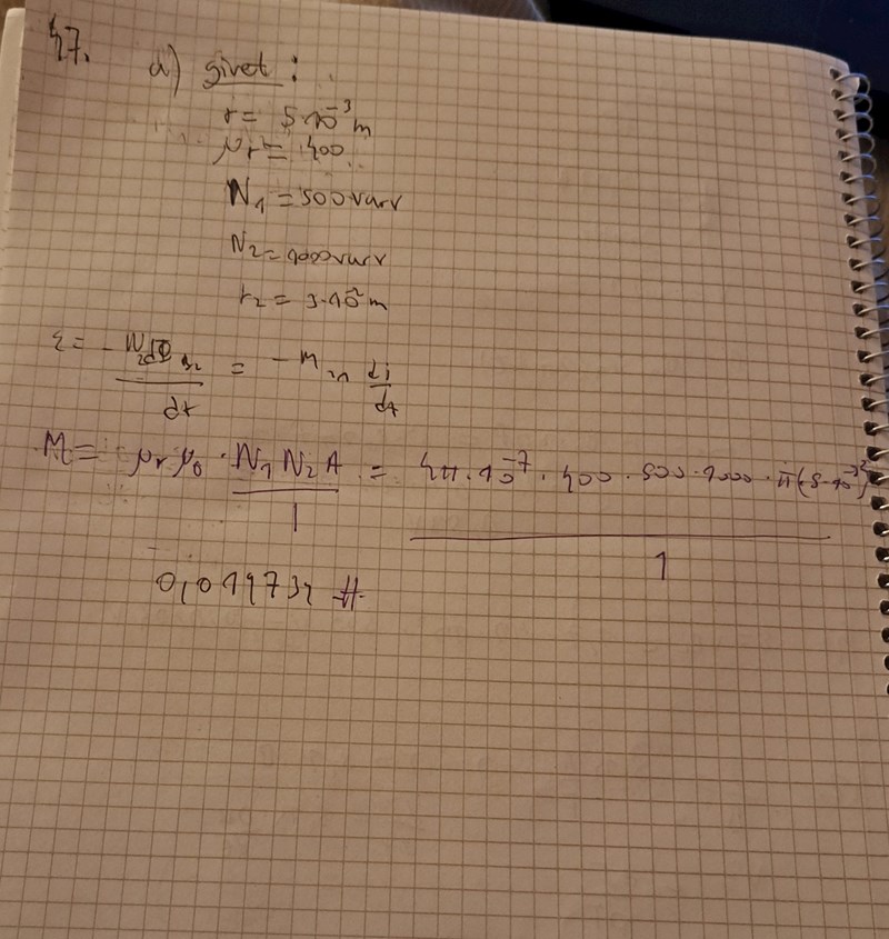 Jag fick dessvärre fel svar enligt facit då jag gjorde på följande sätt och facit fick det till 0.329 H.