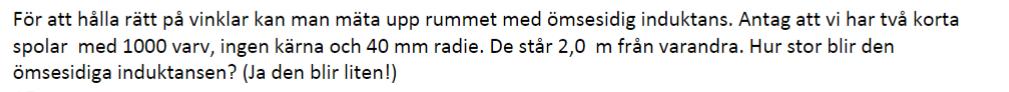På nätet hitta jag en lösning till denna där man försummar radien av spolarna för att de är så små till skillnad från avståndet mellan spolarna. Är detta fel att göra? Gör man detta så blir ju formeln enklare på slutet. Här är facit: