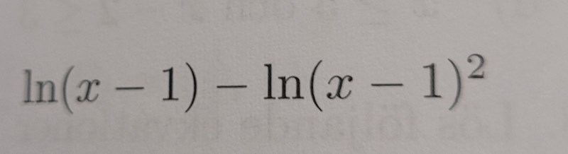 Ett annat sätt att komma fram till samma resultat är ln(x-1)-ln((x-1)2) = ln(x-1)-2•ln(x-1) = -ln(x-1)