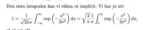 Funktionen är jämn och antar samma värden på och . Integralen över de positiva talen är då hälften av integralen över alla .