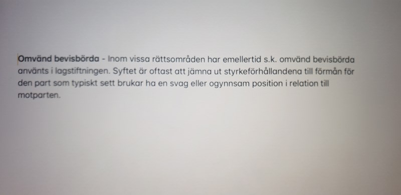 Jag vet att, med bevisbörda menar en parts skyldighet att lägga fram bevis för sitt påstående. Alltså i brottmål har åklagaren skyldighet att bevisa utom rimligt tvivel att den misstänkte är skyldig för brott som begått och när det gäller tvistemål har den som kommer med sitt påstående skyldighet att bevisa att det stämmer. Men jag förstår inte vad omvänd bevisbörda betyder ! 😢