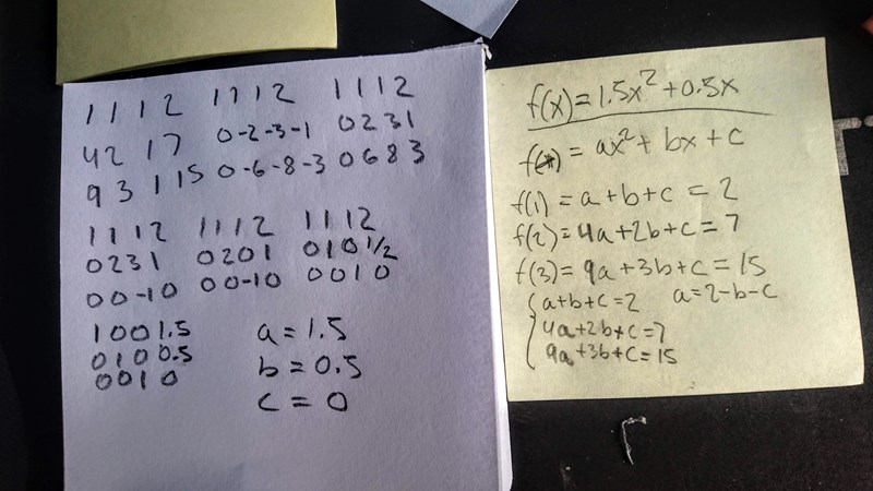 Om man vet (eller gissar!) att det skall bli en andragradsfunktion, kan man sätta in tre värden och få fram ett ekvationssystem som man kan lösa.