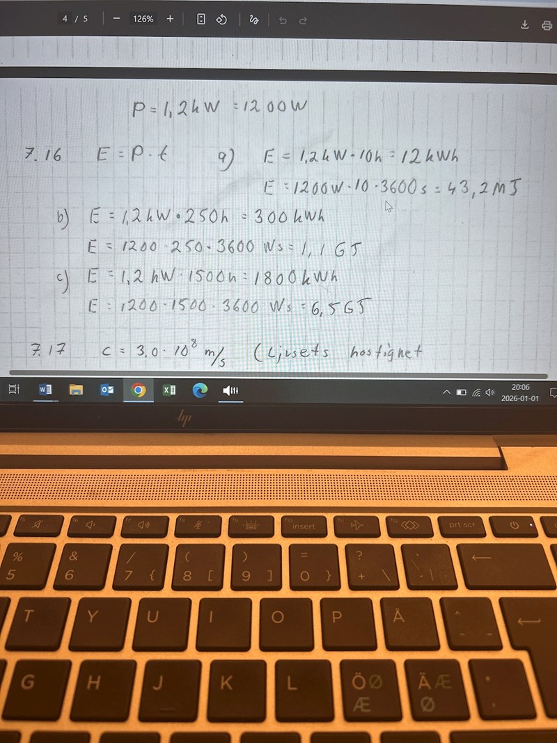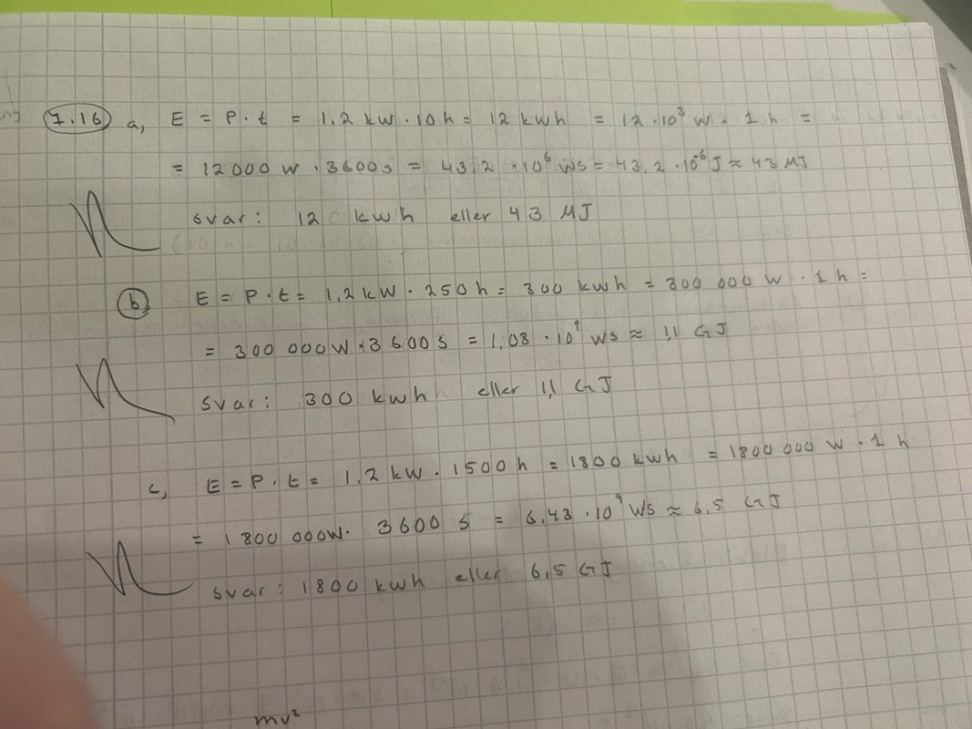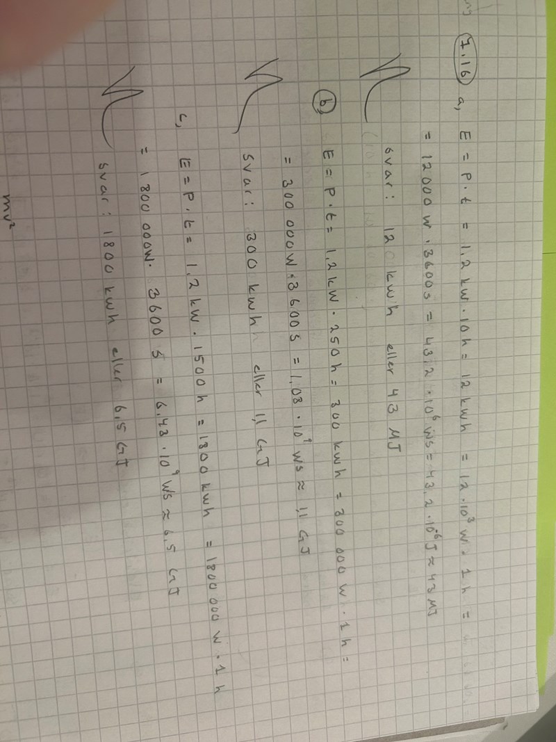 Uppgift (c): Jag hade svarat 1,8 MWh istället för 1800 kWh. Notera även att watt är stort W.