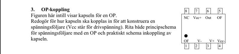 I andra uppgiften ska du använda samma op-amp som spänningsföljare. Läs igenom vad man använder en spänningsföljare till, och hur man konstruerar den mha en op-amp.