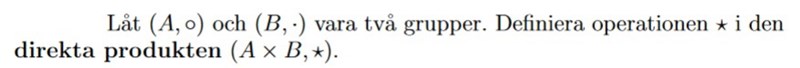 Jag har som sagt inte så bra koll på detta, men det verkar som att givet två strukturer, i ditt fall grupper, så visar man hur man kan konstruera ytterliggare en grupp utifrån dessa. Den ges av den direkta produkten och beror då på både och . Så * "blir" ingenting, det är vad det är men beror på underliggande multiplikation i och .