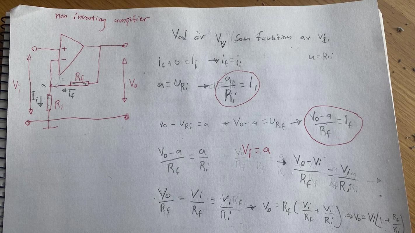 Precis, v3 = (1 + R2/R1)v2. Detta är ju svaret på a. kretsen bortom V3 är ju en summator. Där ena insignalen är v1 och den andra v3?