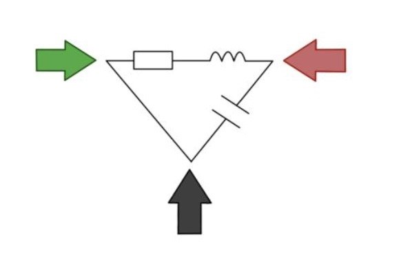 Om kretsen är bruten mellan den gröna och svarta pilen går där ingen ström.
