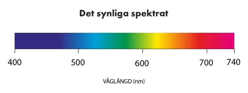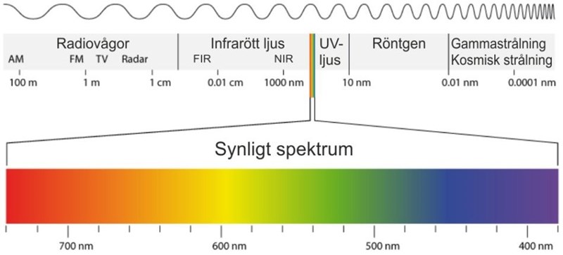 Varje typ av monokromatiskt synligt ljus är associerat med en färg, och varje färg är associerad med en våglängd. Rött ljus har exempelvis en våglängd på ~650 nanometer vilket har att göra med att ljus är en våg. Detaljerna i vad en våg är kan man fördjupa sig i men konkret så är det att varje typ av färgat monokromatiskt ljus är associerad med ett tal och att om ljus har en våglängd som är mindre än 400 nanometer eller mer än 740 nanometer så går det inte att se (det är inte synligt ljus)
