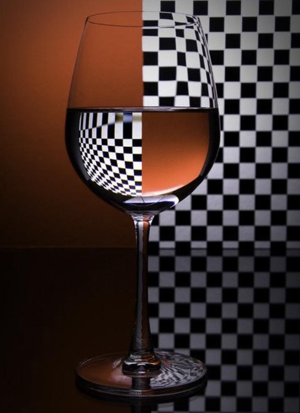 Här finns en illustration till förvrängning i ett glas. I mitten ganska lite, på kanterna betydligt.