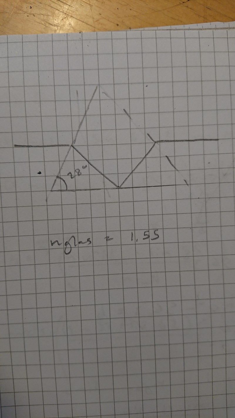 Optik, samband mellan prismans vinkel och infallsvinkeln
