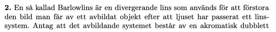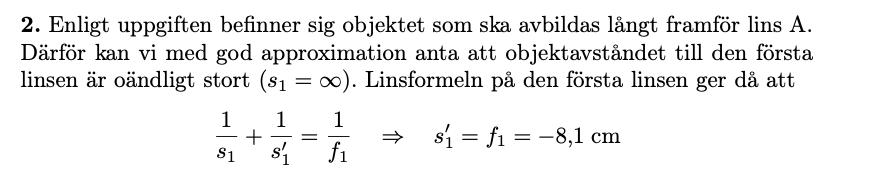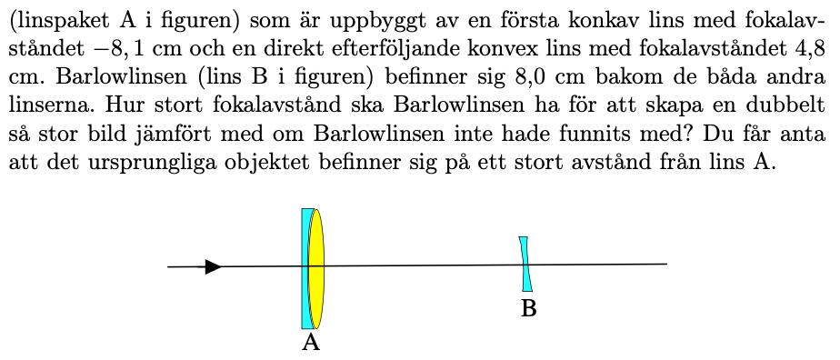 Det enklaste är att göra som de gör i facit, d.v.s att om den negativa linsen ska ge en förstoring på 2 så måste bildavståndet vara (-) dubbelt så stort som objektsavståndet.