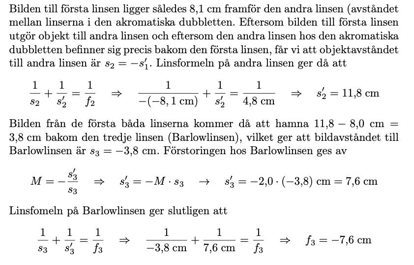 förstoringen utan barlowlinsen blir väl VL i (2) utan gånger 2 faktorn, och om man vill att förstoringen med barlowlinsen ska vara 2 gånger större ska man väl multiplicera den förstoringen med 2?