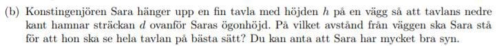 Sen blir en låååååång beräkning och fick ett värde på x att det ska vara d(h+d)−−−−−−−√d(h+d)