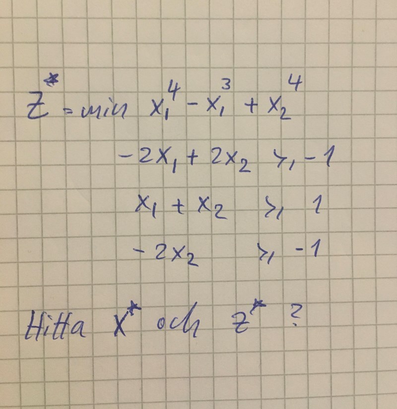 Hej här är min min problem och jag ska hitta den optimala lösningen som är x* och ska även hitta z*?