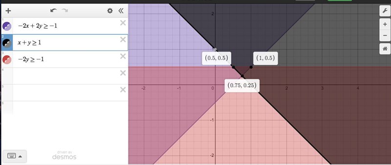 men vet inte om jag tänker rätt riktigt är den där triangeln min feasible set och är min optimala löstning (0.75,0.25) eftersom när jag stoppar detta i målfunktionen är den minsta och sedan får jag ut min z*?