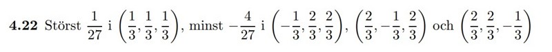 Jag har hittat en punkt genom Lagranges multiplkations-nånting genom att se var f och g är parallella och denna punkt är (1/3, 1/3, 1/3) och är en kandidat som dessutom antar det största värdet för f. Men sen blir allt fel.