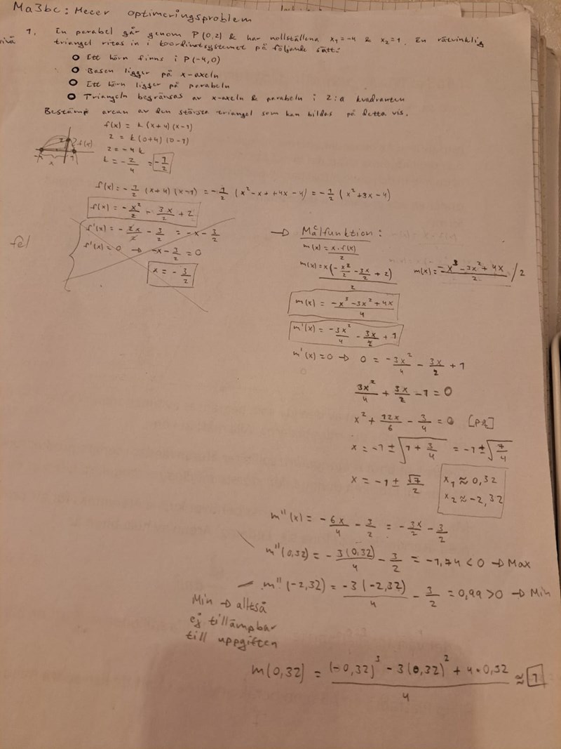 Okej tack. Skulle man kunna ha basen på triangeln som x och höjden f(x-4), alltså i A(x)?