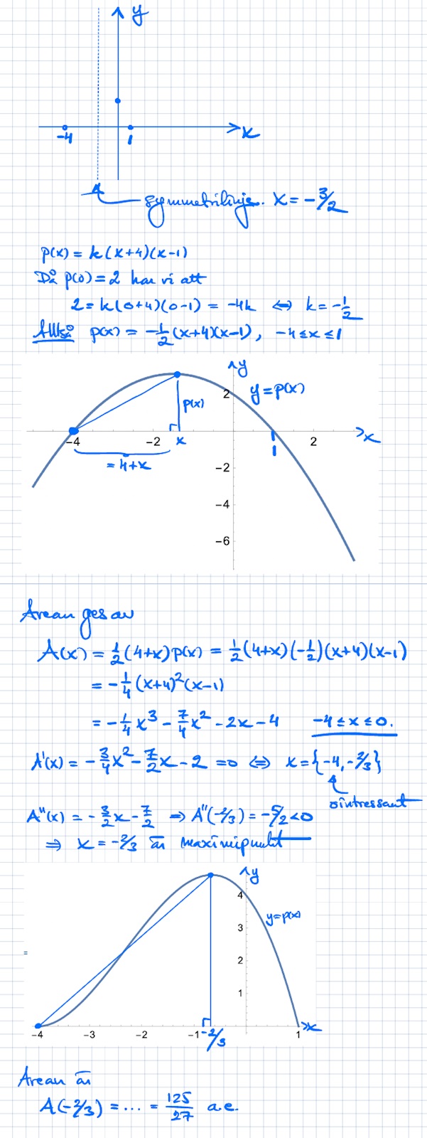 Och, i den sista grafen har jag dragit en hypotenusa. Det är bara dumheter. Bortse från den. Grafen visar arean, och dess maximum. Det är parabeln i grafen tidigare som har en triangel, INTE den andra grafen.