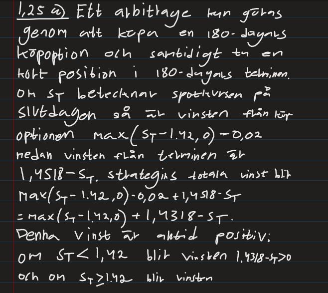 Enligt facit så skall vinsten bli 0.118 ifall ST >= 1.42 dock fattar jag inte hur man kommer fram till det. Enligt mig borde vinsten vara 1.4318-1.42 vilket är 0.0118 istället.
