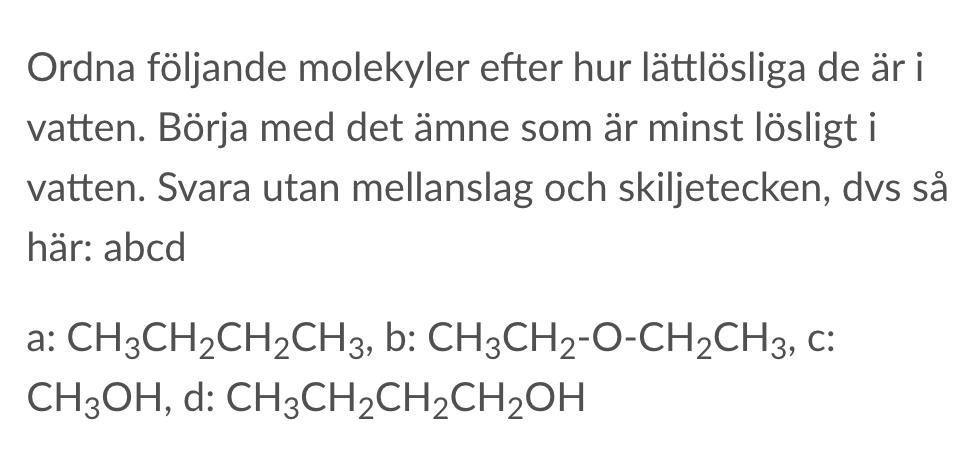 Ordna molekyler utefter hur lättlösliga dem är i vatten