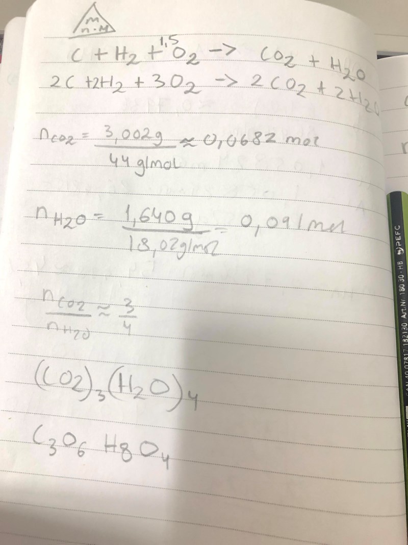 Förhållandet n(C) : n(O) : n(H) = 0,068 : 0,136 : 0,182