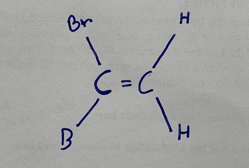 3. Har molekylen någon speciell isomeri? Dvs, molekylen kan se ut på olika sätt. Därför måste vi specificera hur bromet är placerat.