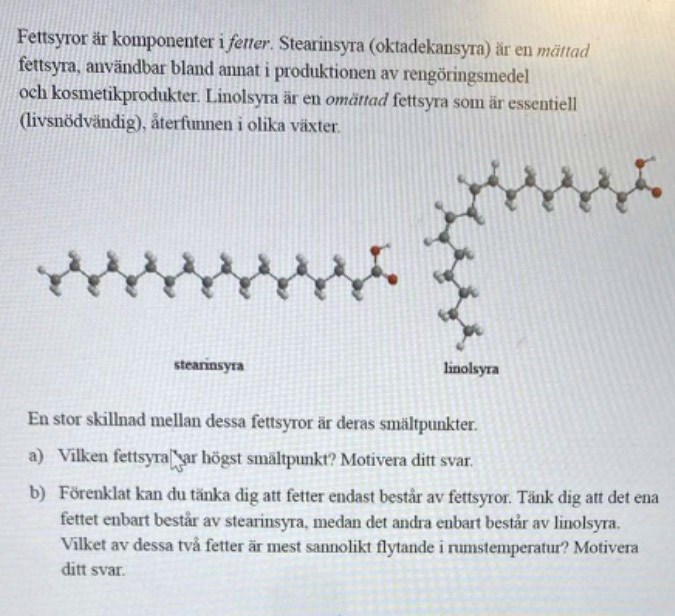 Börja med att beskriva hur du tror det kommer sig att stearinsyran har högst smältpunkt.