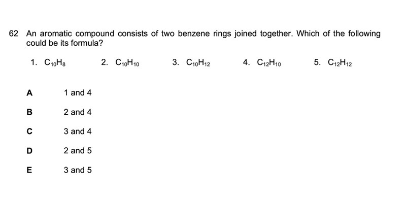 hej, svaret på denna frågan ska vara A. Jag kan strukturen på en bensenring men jag förstår inte varför det finns två olika formula för en dubbelring.