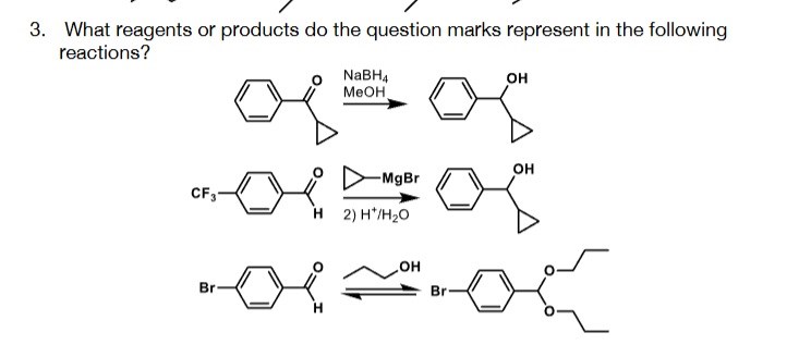 Gignard är väl endast aktuellt för ämnet på mittenraden (kallar det B). De andra reaktionerna är av annat slag.
