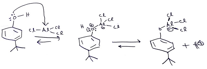 Problem 2. Det elektronhunrgia aluminiumet i AlCl3 kommer att ha en tendes att sätta sig på dels syret i fenolen och dels syret i produkten, eftersom syret är en bra nukleofil. Det går till så här: