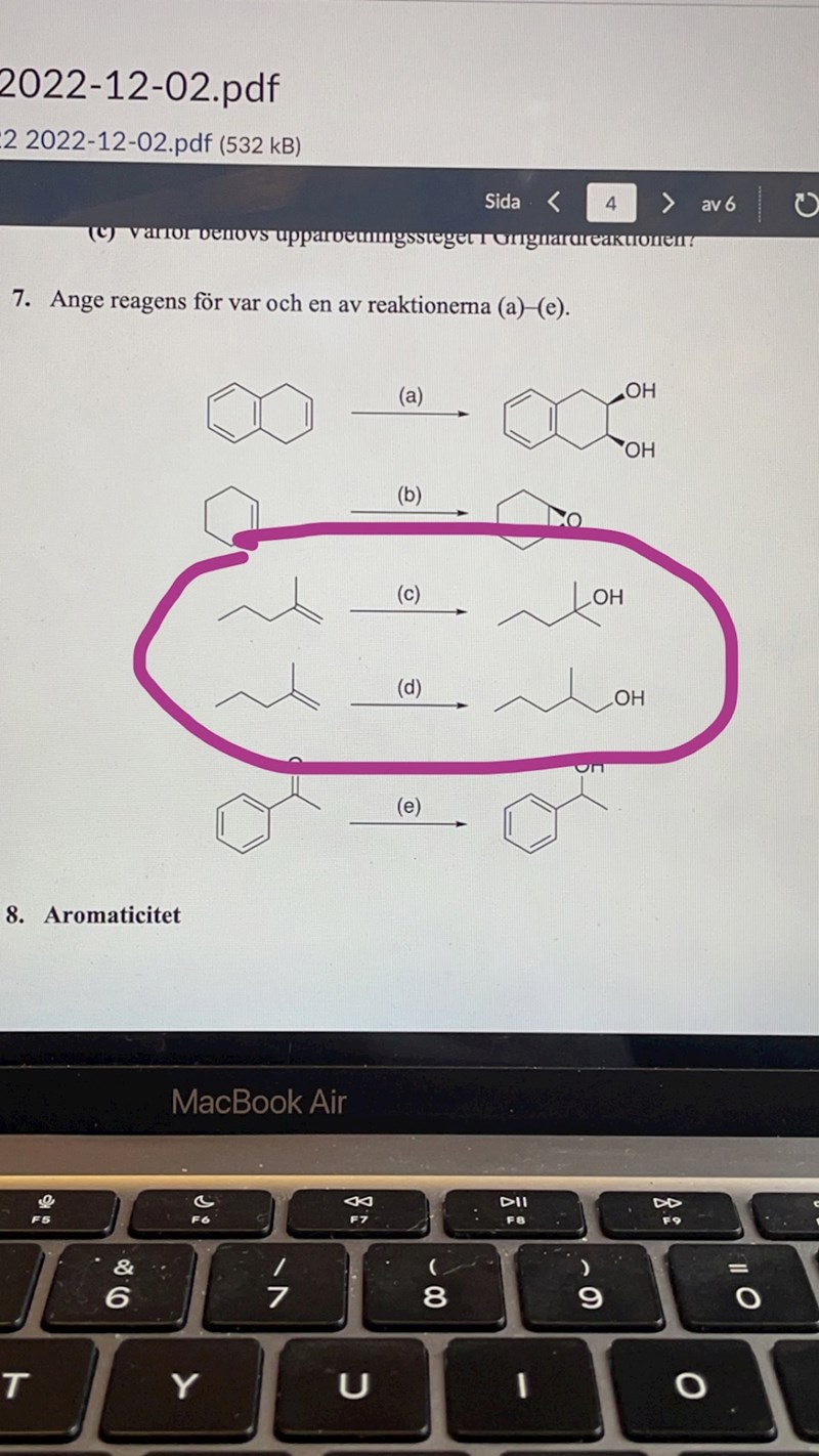min fråga är alltså vilken reagens, samt vilken reaktionsmekanism som krävs, för de två följande problemen: