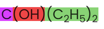 Exakt, jag skulle behöva ha hjälp att rita strukturformeln. Fattar inte hur stycket C(OH)(C2H5)2 kan bli som det blir