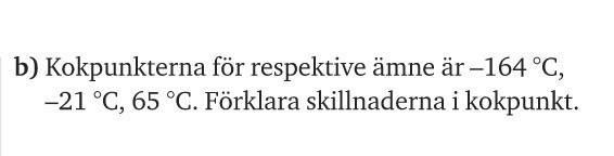 b) Vad beror kokpunkterna på, varför blir det skillnaderna i kokpunkt.