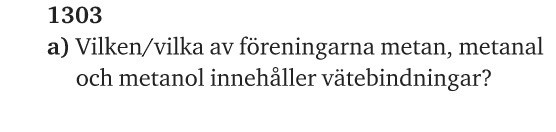 Hur långt har du själv kommit på uppgiften? Vad behövs det för att det skall kunna finnas vätebindningar?