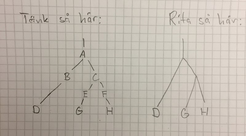Jag har gjort två träd. Ett visar hur man tänker när man ritar, och ett visar hur ett färdigt träd ska se ut.