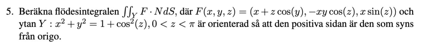 Notera att vi vill räkna ut flödet genom delytan Y med innåtriktad normal, men divergenssatsen kräver utåtriktad normal. Därför kommer det in ett minustecken i beräkningarna.